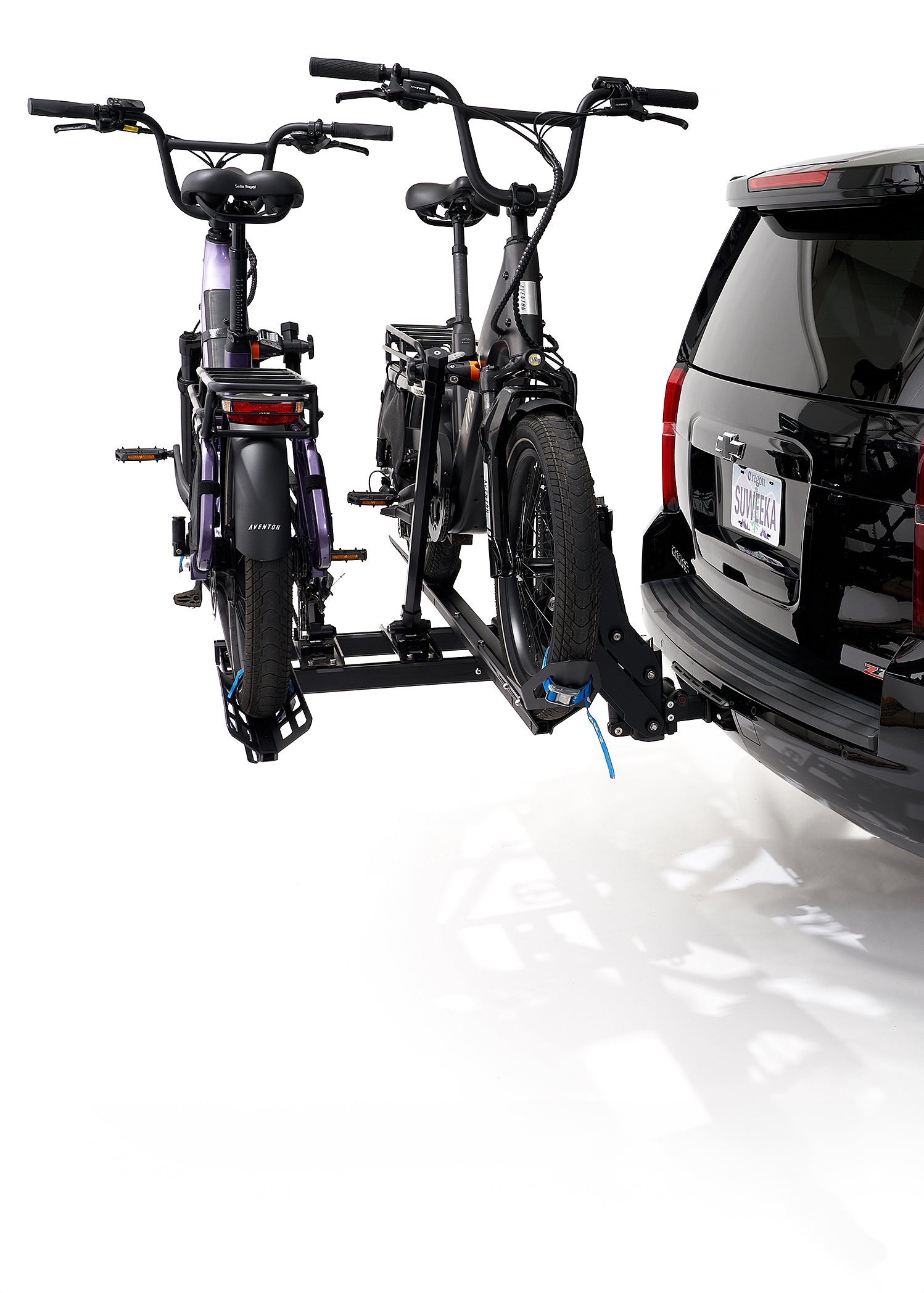 This is the best bike rack I own. 5 out of 5 stars. I have two others….this will be my last. Incredibly well built and the lifter mechanism means I can lower the rack to the ground on my truck and just ‘walk on' my RAD Rover e-bikes. Assembly was easy and I really appreciate the fact the bike rack breaks down with a keyed locking system so you don’t have to muscle a heavy bike rack if you take it off. Because I get questions from people at the trailhead when I go biking, I slapped your decal on the side so people know what it is and where to find it.