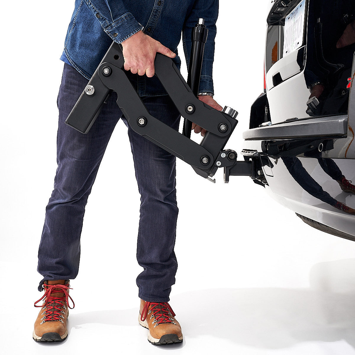 This is the best bike rack I own. 5 out of 5 stars. I have two others….this will be my last. Incredibly well built and the lifter mechanism means I can lower the rack to the ground on my truck and just ‘walk on' my RAD Rover e-bikes. Assembly was easy and I really appreciate the fact the bike rack breaks down with a keyed locking system so you don’t have to muscle a heavy bike rack if you take it off. Because I get questions from people at the trailhead when I go biking, I slapped your decal on the side so people know what it is and where to find it.